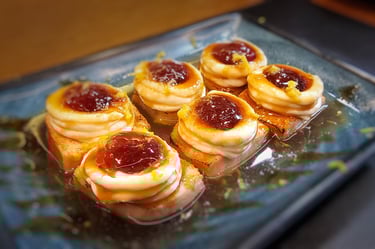 A harmonia perfeita é alcançada com o salmão flambado e o cream cheese, e para deixar tudo ainda mais especial, a geleia de manga feita pelo nosso chef adiciona um toque de acidez e doçura, intensificando o sabor do salmão e criando uma experiência única para o paladar.